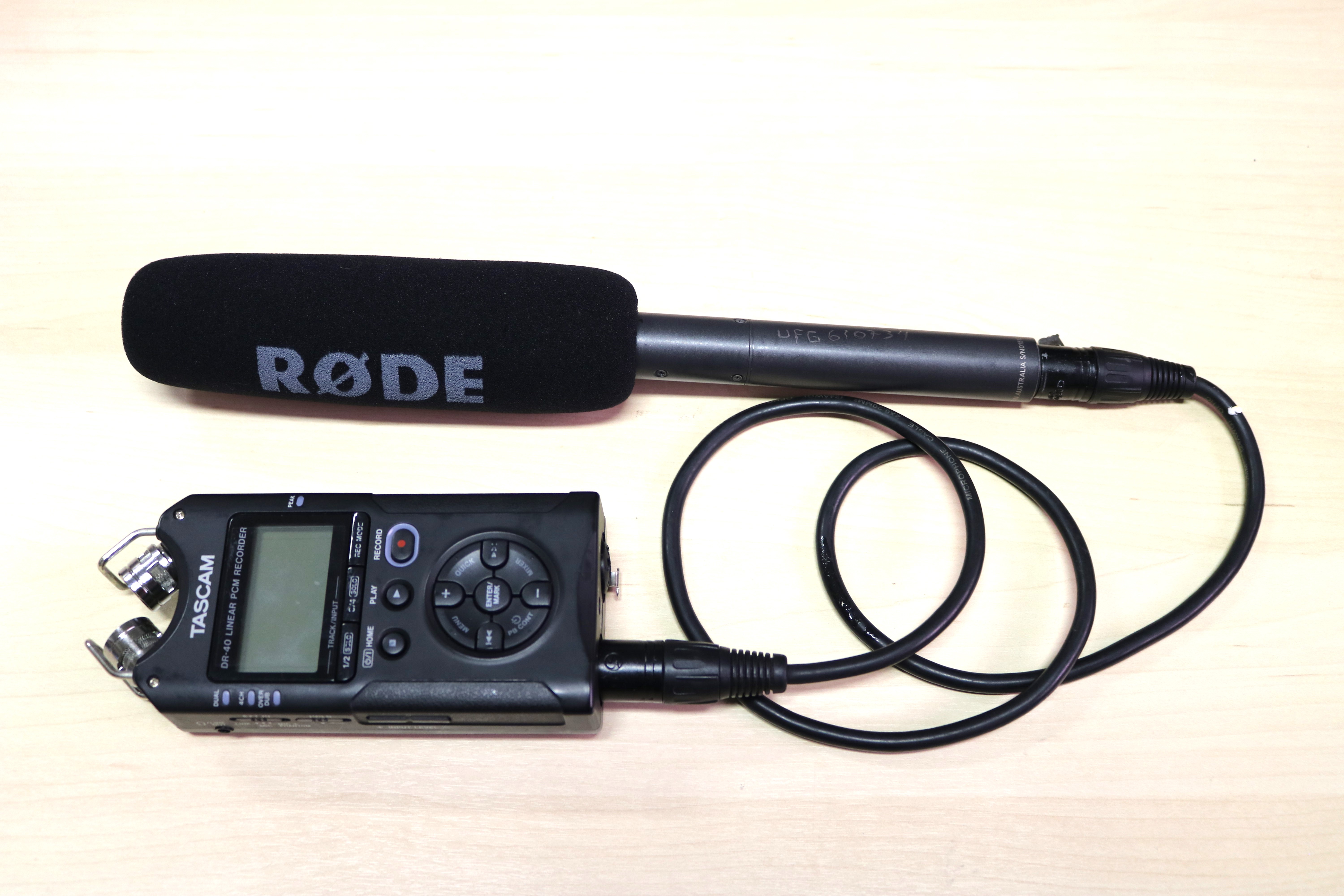 Gravadores Tascam DR 40, com microfone direcional Senheiser ME 66 |
